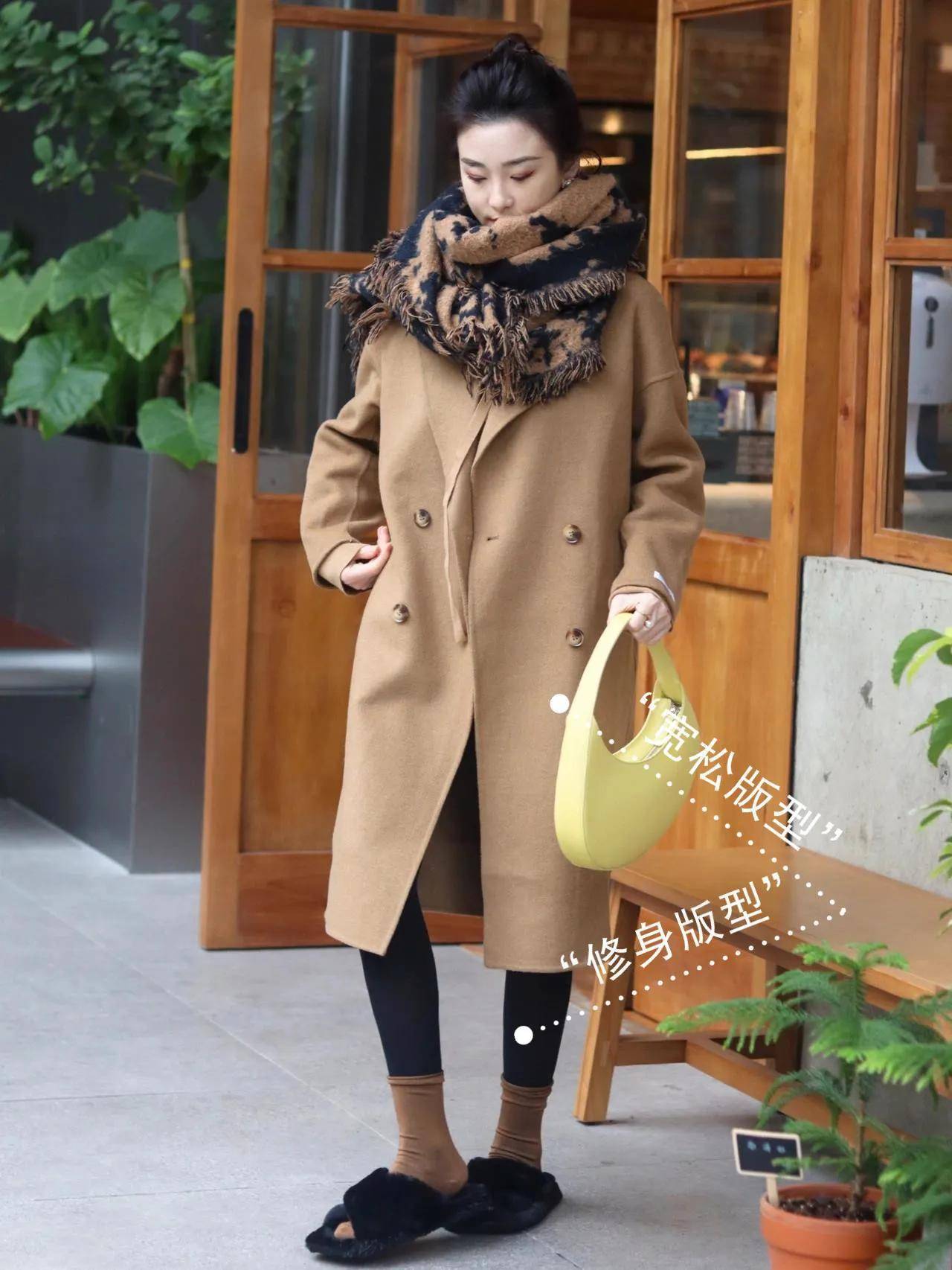 不过不管选择什么样的大衣外套色彩或者是款式材质,一定要注意多选那种高腰收腰款的版型,如果不是高校生要换的版型本身,自己身材就没有那么高挑的情况下,就像下面这一件驼色的大衣外套,如果身材肥胖的女性穿了,那毫无疑问,整个人就显得臃肿显胖。