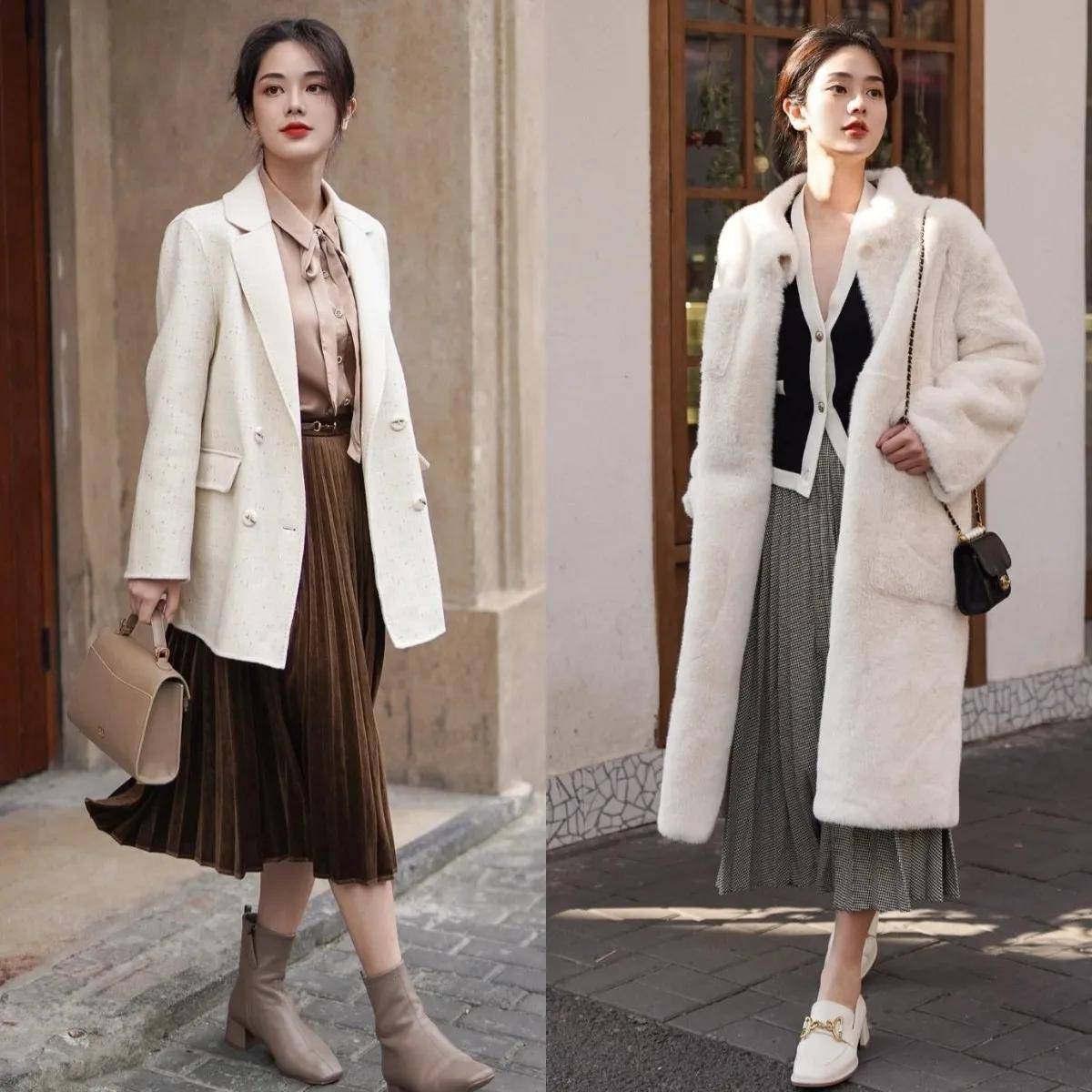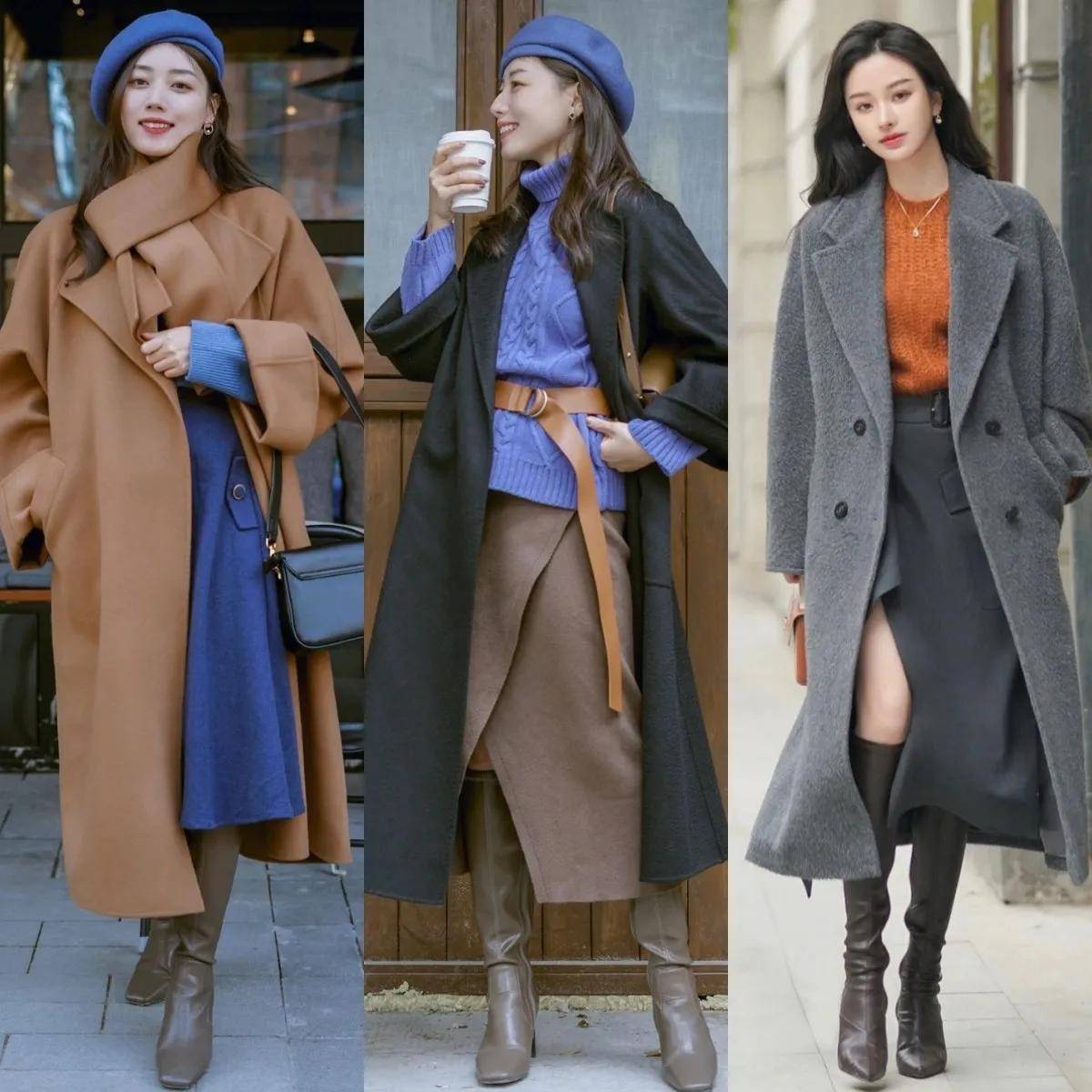推荐选择右边的这一件棕色的大衣外套,内搭一套西服裙装,叠穿黑色针织打底衫,脚上穿的黑色的高温单鞋,这样的衣服造型搭配反而更时髦,保暖舒适。去公司上班的时候有空调,可以把你的大衣外套脱了,挂在衣橱里面,或者是挂在你的工作椅上,下班的时候再穿,完全没有任何问题。